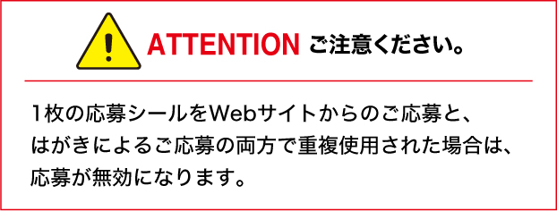 - ※1枚のシリアルナンバー付応募シールで、はがきとWebの重複応募はできません。