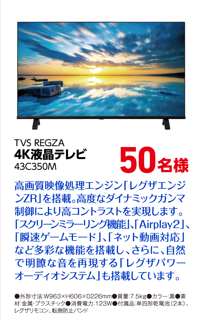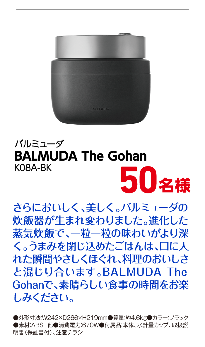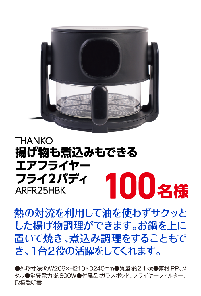 - ・お客様の住所・転居先が不明等の理由により、賞品のお届けができない場合、ご応募を無効とさせていただきます。