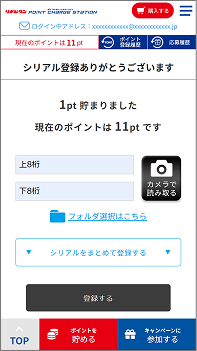 ご入力後、「登録する」をクリックすると、「現在のポイント」に反映されます。